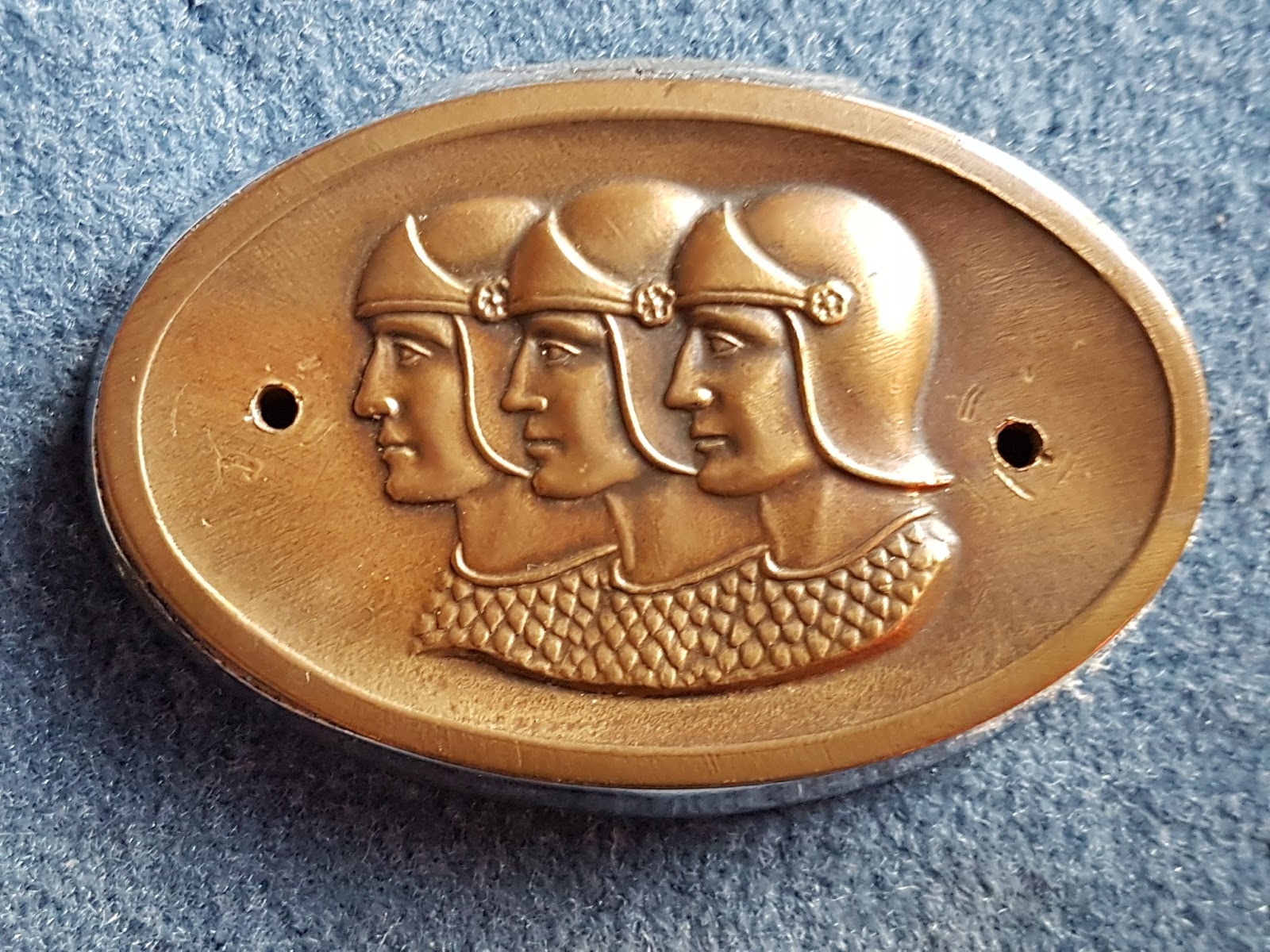 In 1934 there was a wonderful hood ornament showing the three brothers with an incorporated blue enameled emblem: